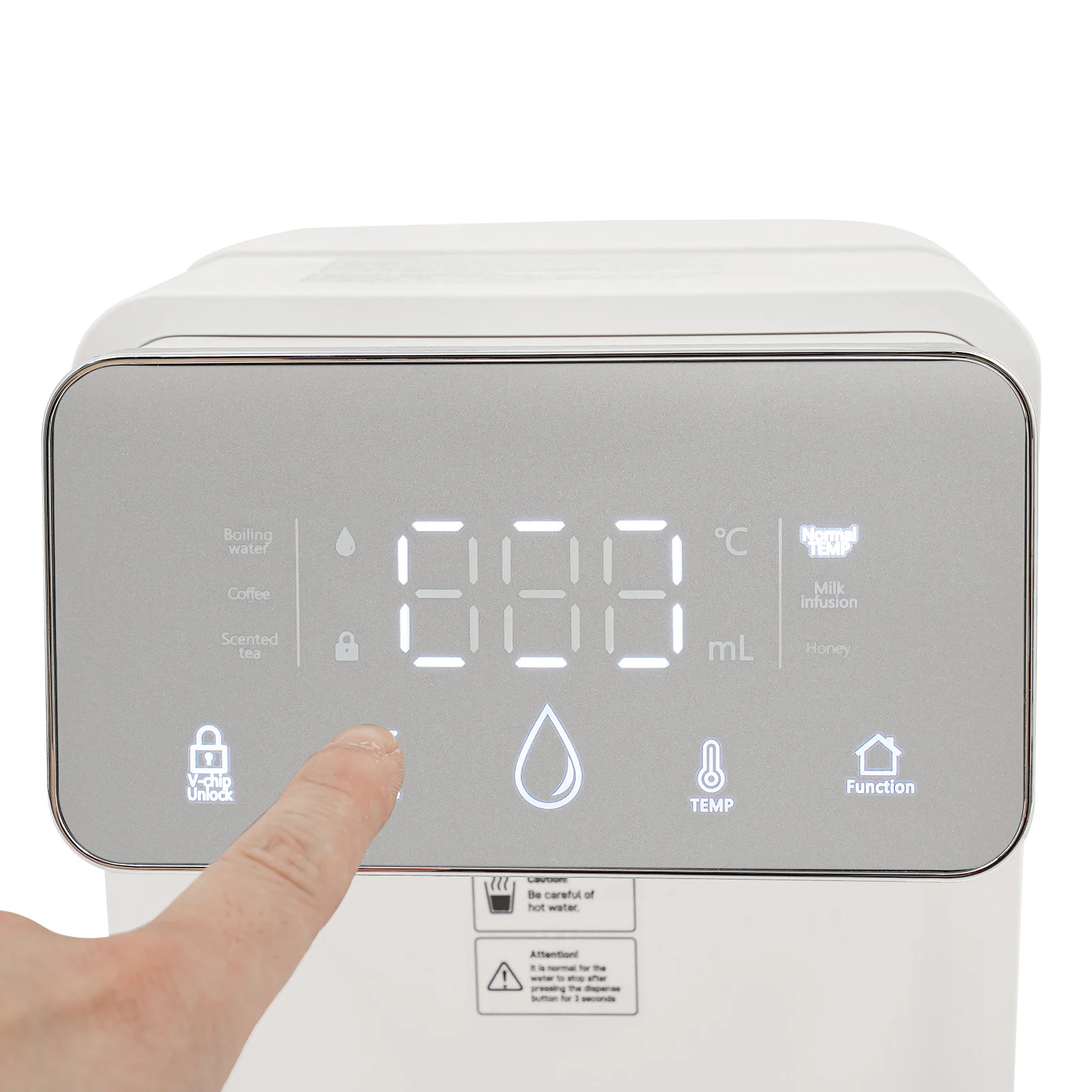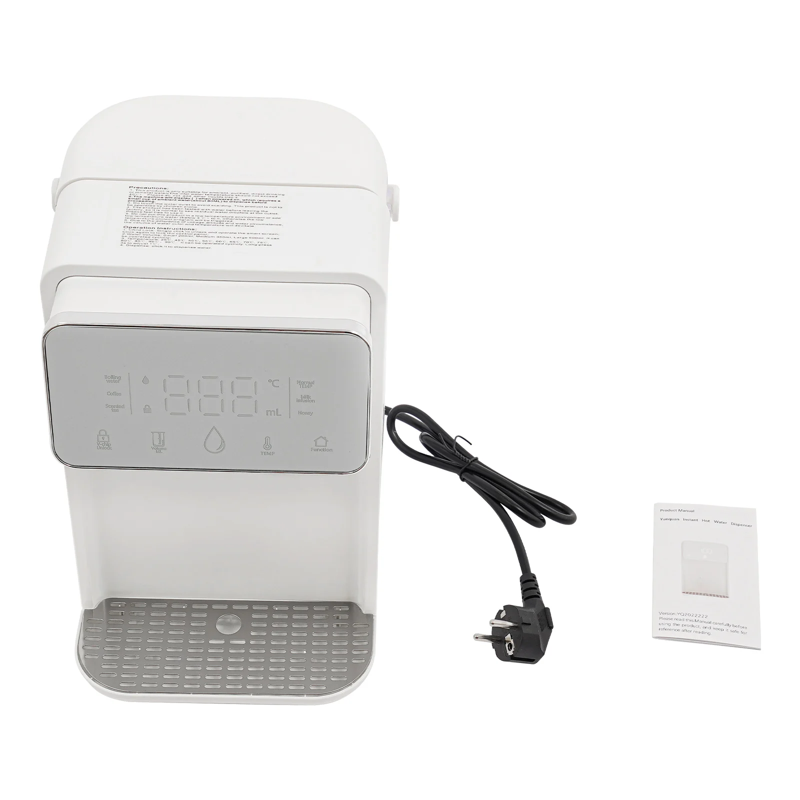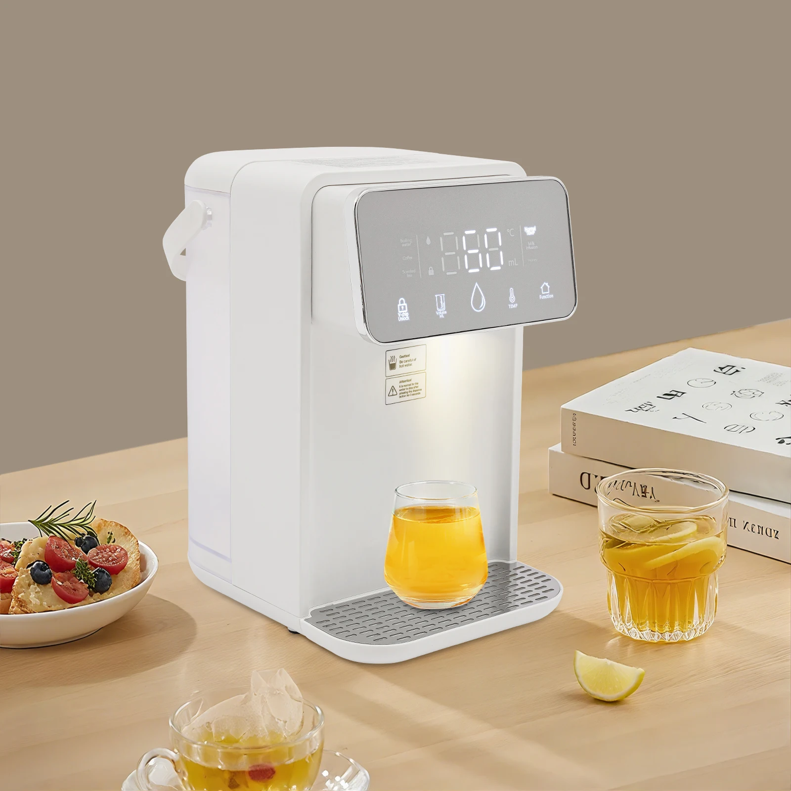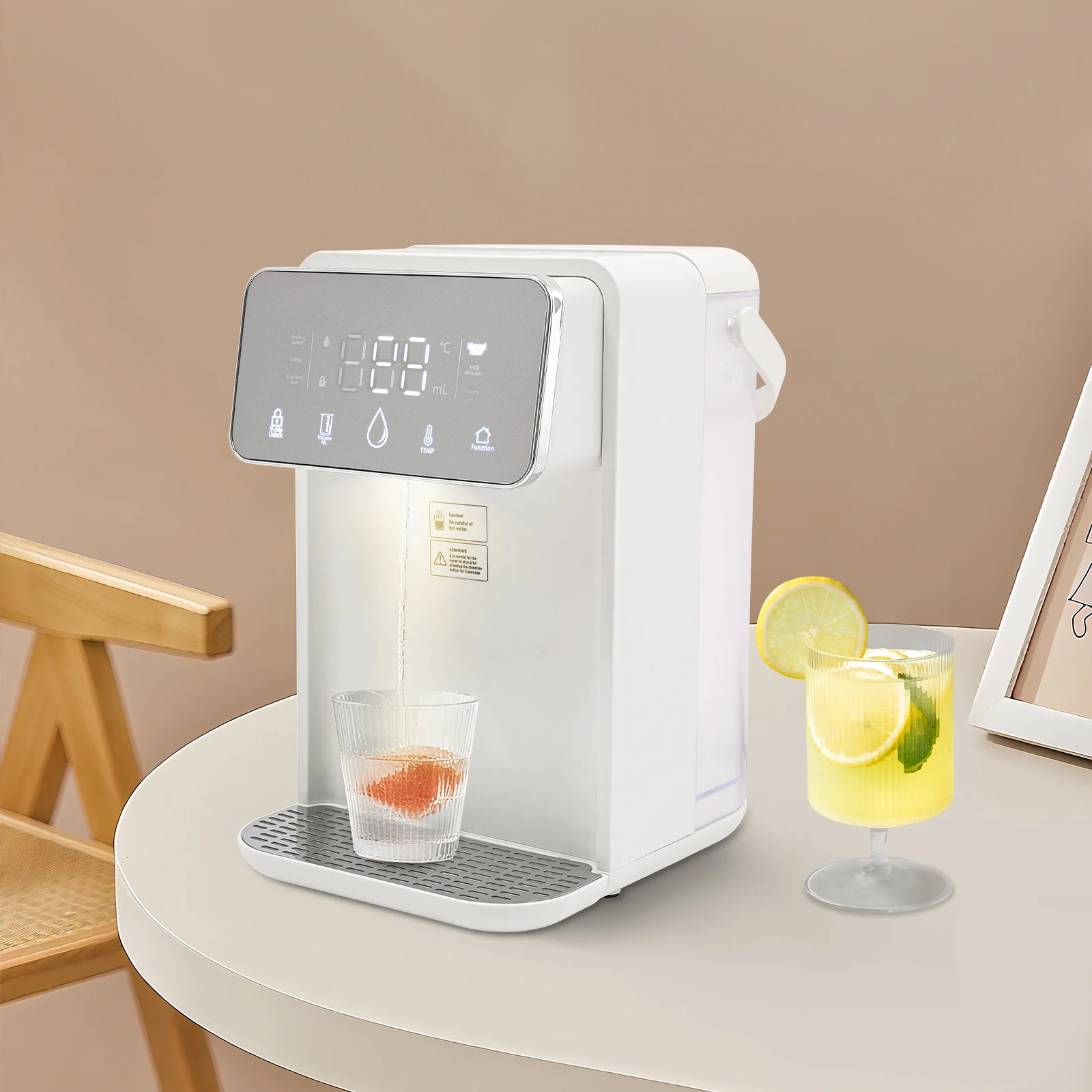 Skip the kettle and enjoy boiling or warm water in just seconds with this sleek instant hot water dispenser. Perfect for coffee, tea, baby bottles, or instant meals, it delivers precisely heated water from 77°F to 210°Fat the touch of a button. With a large 3.5L (0.77Gal) tank, you can serve multiple drinks without constant refilling. The digital display lets you set both temperature and volume, so every cup is just right. Designed with safety in mind, it features a built-in night light, drip tray, and cool-touch handlefor easy handling. Compact and modern, it fits perfectly on any kitchen counter, office desk, or nursery—making hot drinks faster, easier, and more convenient every day.